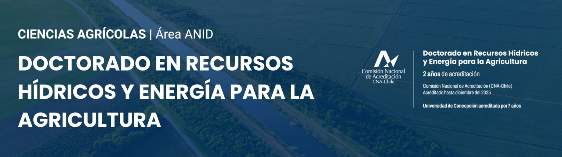 El Programa de Doctorado en Recursos Hídricos y Energía para la Agricultura de la Universidad de Concepción tiene por objetivo general formar investigadores con competencias para generar nuevo conocimiento en el campo de los recursos hídricos y energía para la agricultura, a través del desarrollo de investigación básica y aplicada, de forma autónoma y/o liderando equipos multidisciplinarios, en torno a problemáticas científicas que permitan aportar a la transferencia tecnológica.